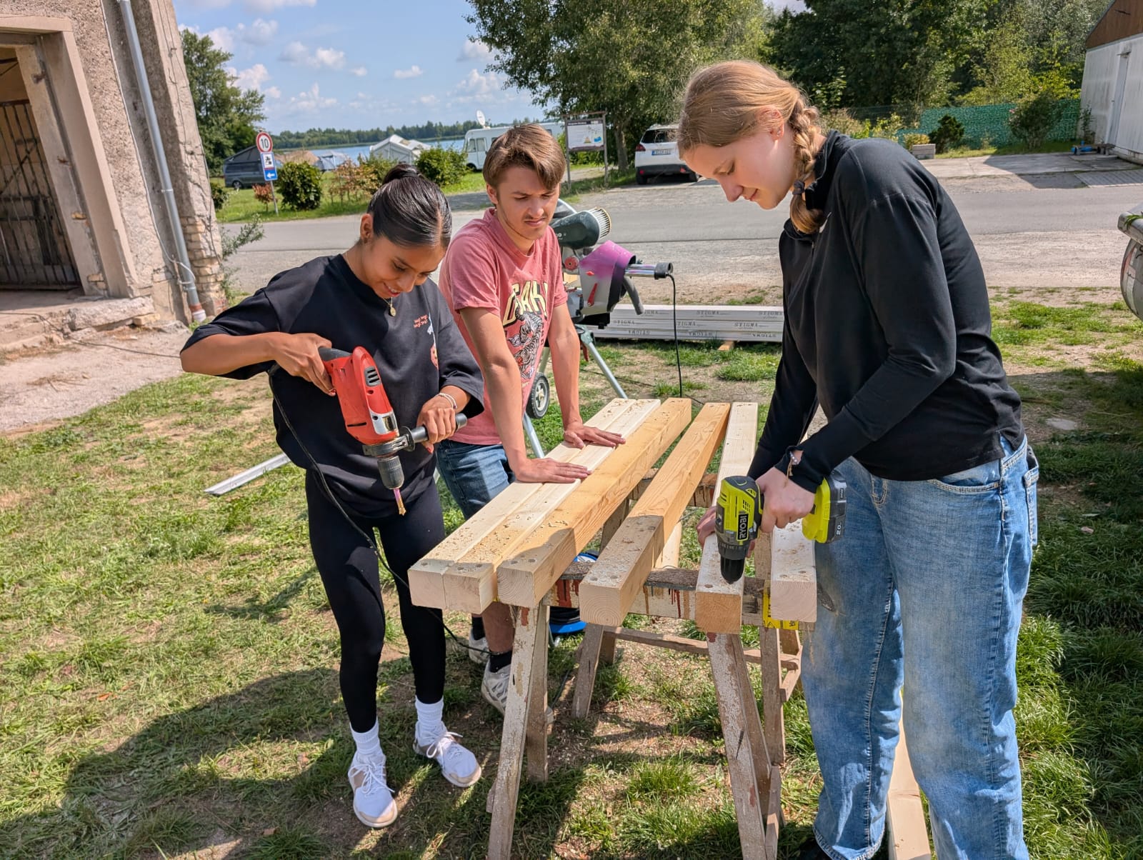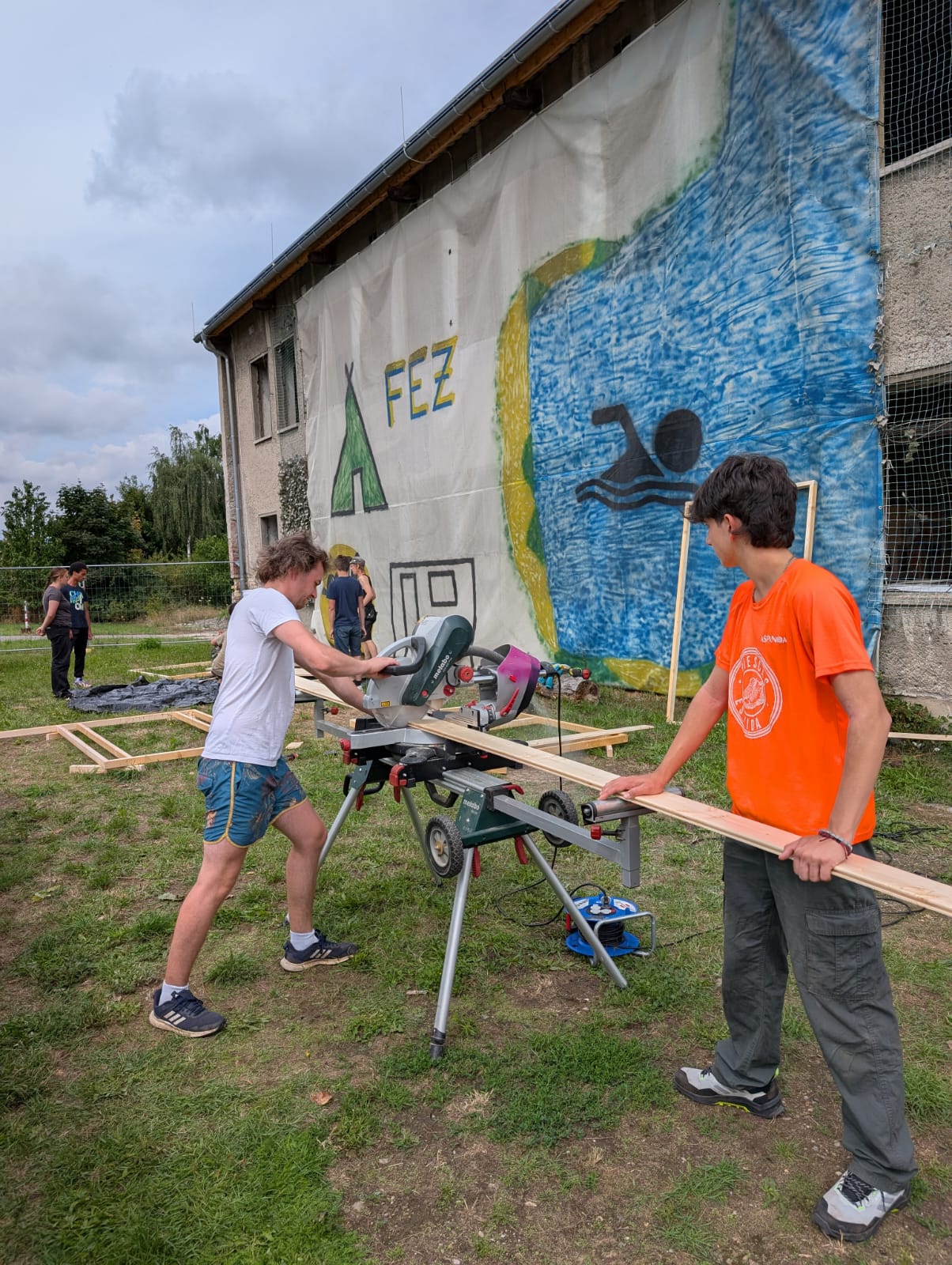 There are opportunities for sports on site (football, basketball, volleyball, skate Park, table tennis, billiards, darts), and swimming is also possible in the nearby swimming lake. A day trip to Leipzig is planned, including a canoe trip on the Pleiße/Elster rivers, as well as a day trip to Berlin. We will also explore the Eilenburg area, including the 800-year-old castle cellars. A raft trip on the local Mulde river can also be arranged upon request.